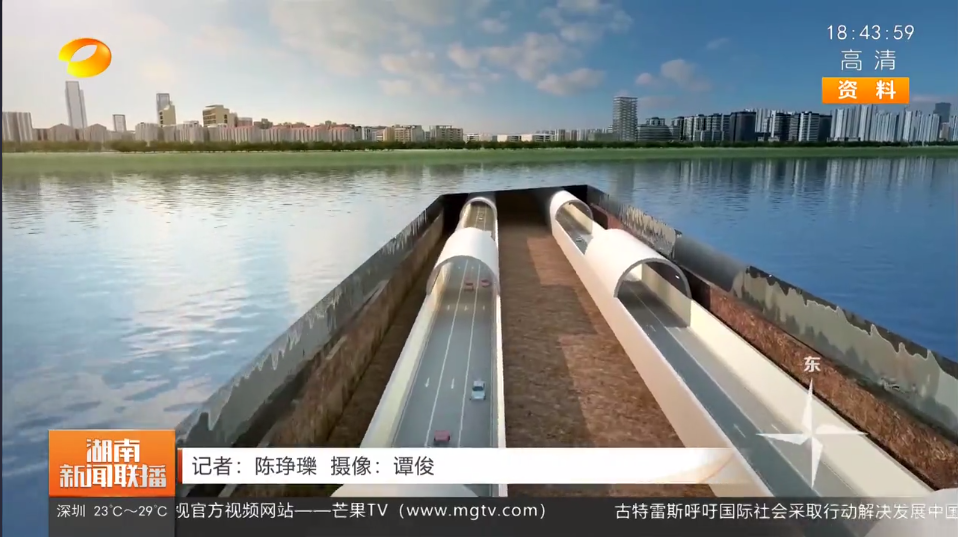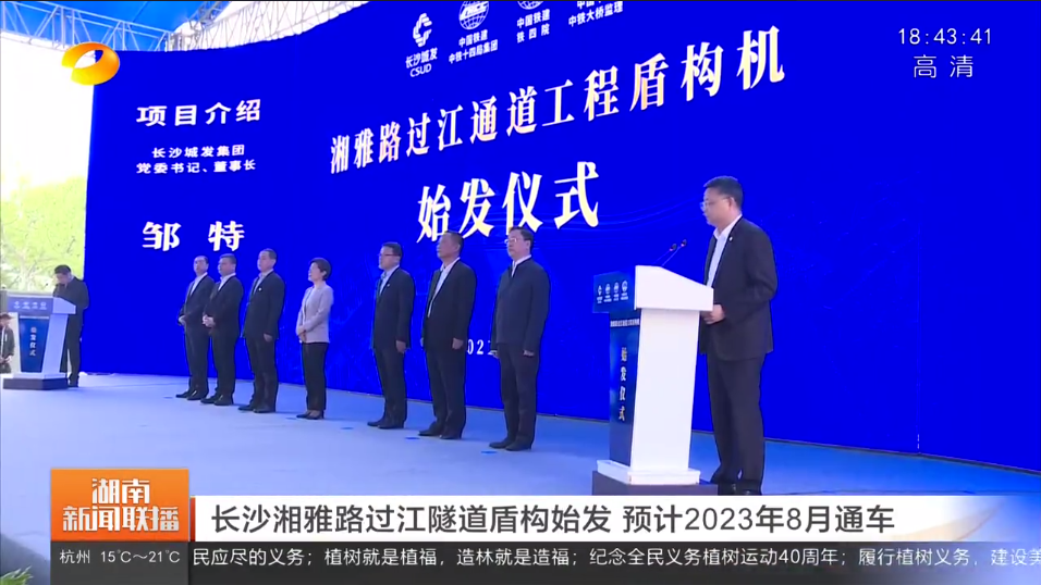 湖南新闻联播:长沙湘雅路过江隧道盾构始发 预计2023年8月通车 湖南卫视 3月30日